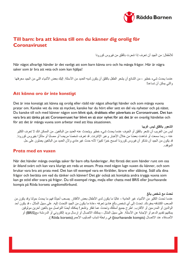 Arabiska, riktat mot barn: bra att känna till om du känner dig orolig för Coronaviruset