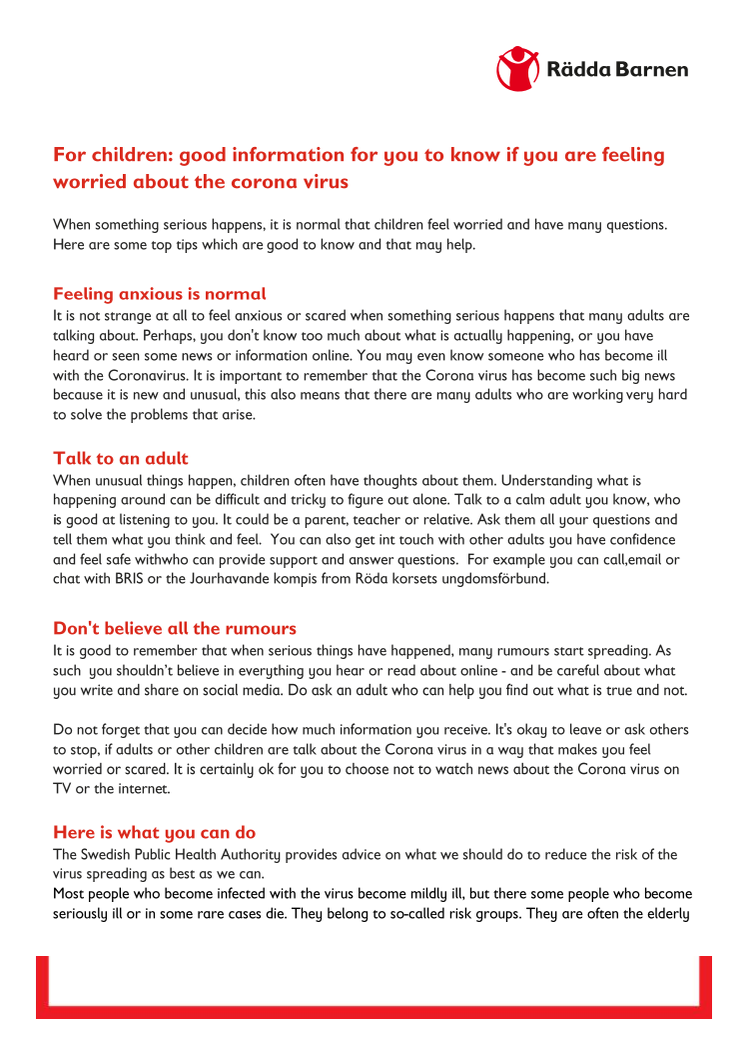 Engelska, riktat till barn: bra att känna till om du känner dig oro pga corona