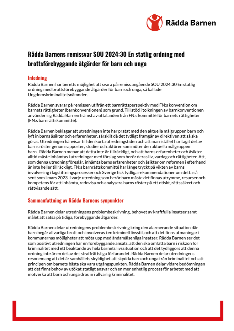 Rädda Barnens remissvar SOU 2024 30 En statlig ordning med brottsförebyggande åtgärder för barn och unga _.pdf