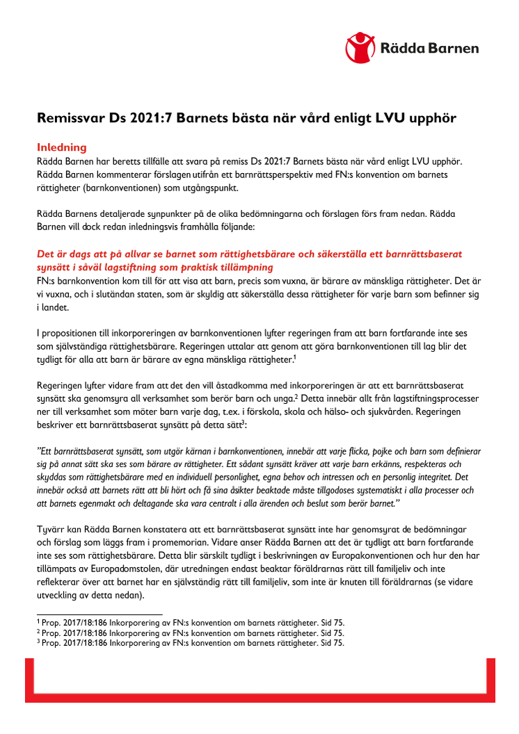 Remissvar - Lex Lilla Hjärtat