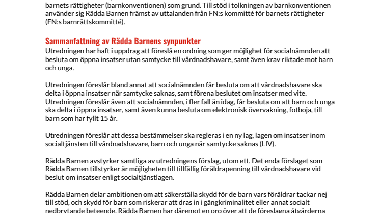 • Rädda Barnens remissvar av promemorian En lag om insatser inom socialtjänsten till vårdnadshavare barn och unga när samtycke saknas Ds 202430.pdf